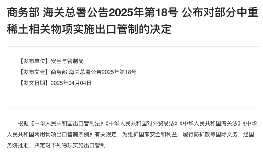 在 2025 年 10 月,中国又对更多稀土元素与相关工艺设备、技术进行扩展限制,新增了几个稀土元素(如钬、铒、铥、铕、镱等)进入限制清单,并对制造稀土磁体、回收、加工设备、技术出口都设定更多许可要求。这意味着几乎所有高性能磁性材料与军工关键组件的上游,都需经中国批准才能出口。