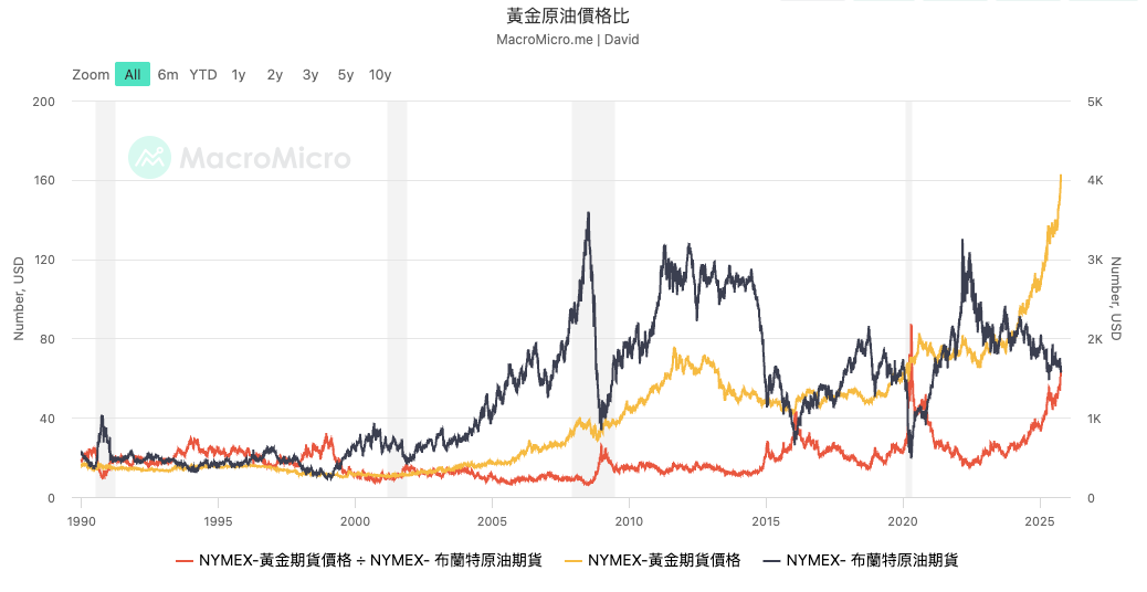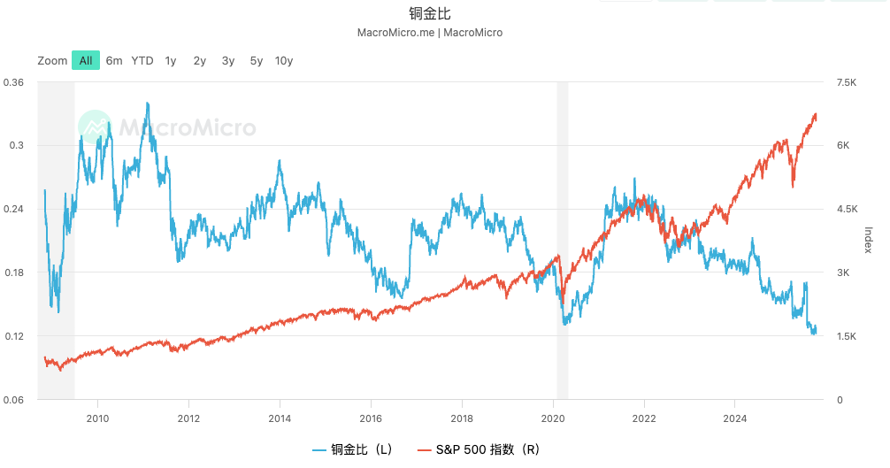 铜/黄金(代表电力与工业活跃度)和石油/黄金(代表能源与通胀预期)。