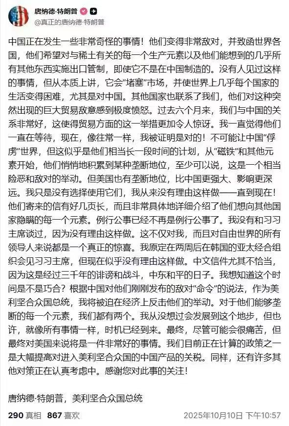 正是这一法案的颁布,让特朗普大怒。他在深夜的推文中怒斥中国“正在武器化资源”,称这是一场“对美国科技体系的直接威胁”。